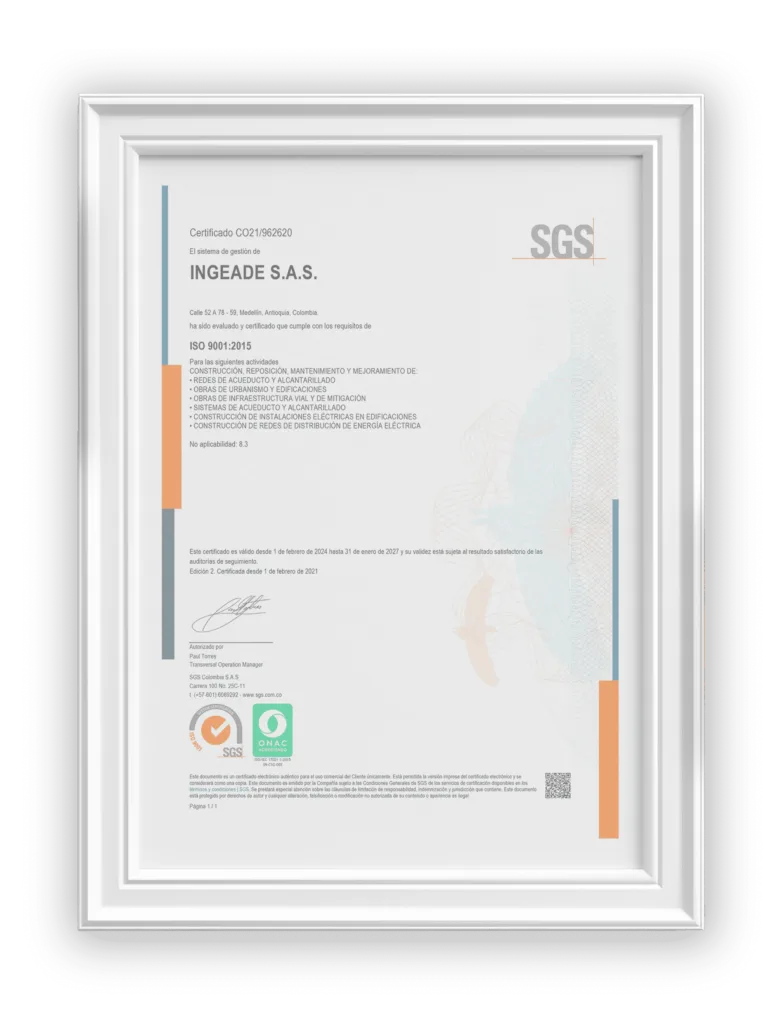 Garantizamos excelencia certificada. Nuestra calidad bajo la norma ISO 9001 en Colombia es tu garantía de resultados impecables y compromiso inquebrantable con la satisfacción del cliente.